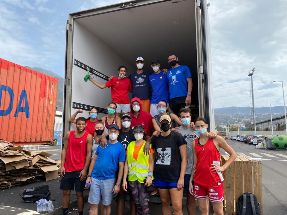 Ellas y ellos, en ropa deportiva, se subieron unos al contenedor y otros cargaron lo enviado desde fuera de la Isla de La Palma en solidaridad con quienes han visto cómo la lava sepultaba sus casas y destrozadas sus terrenos agrícolas y ganaderos.