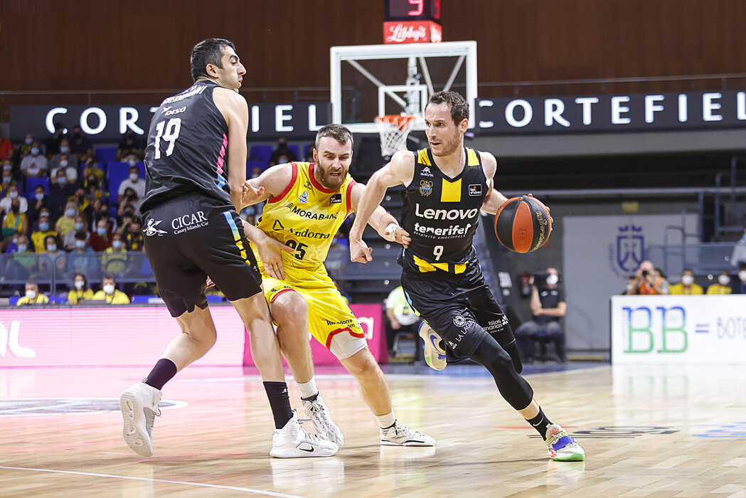Triunfo de Lenovo Tenerife en el retorno a la competición de Gio Shermadini. Los aurinegros se impusieron al Morabanc Andorra por 79-70, después de llegarse al descanso con ventaja canarista por 13 tantos (35-22).