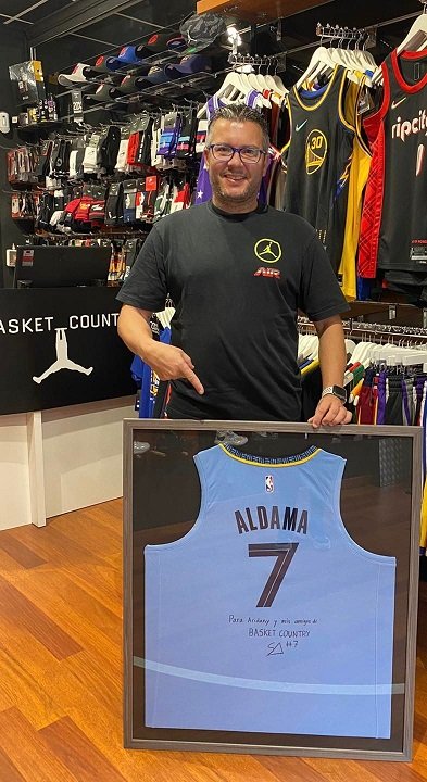 Pues Aridany ya enmarcó la camiseta azul de Memphis que luce en número 7 y lleva el nombre de SANTI ALDAMA.