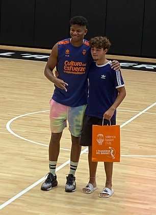 Se trata de Pablo Rodríguez, quien ha recibido el regalo, entregado por el jugador de Valencia Basket Jasiel Rivero, por ser el máximo encestador, anotando 126 puntos en los seis encuentros disputados, como se aprecia en las estadísticas de la organización.