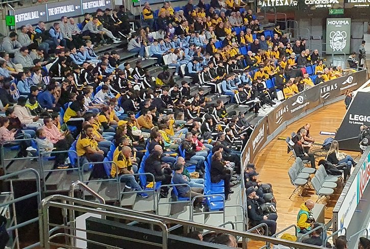 Ambas animarán al Lenovo Tenerife desde la grada de fondo (foto de portada), con los Pollos a la izquierda y la Peña San Benito en sus asientos de siempre.