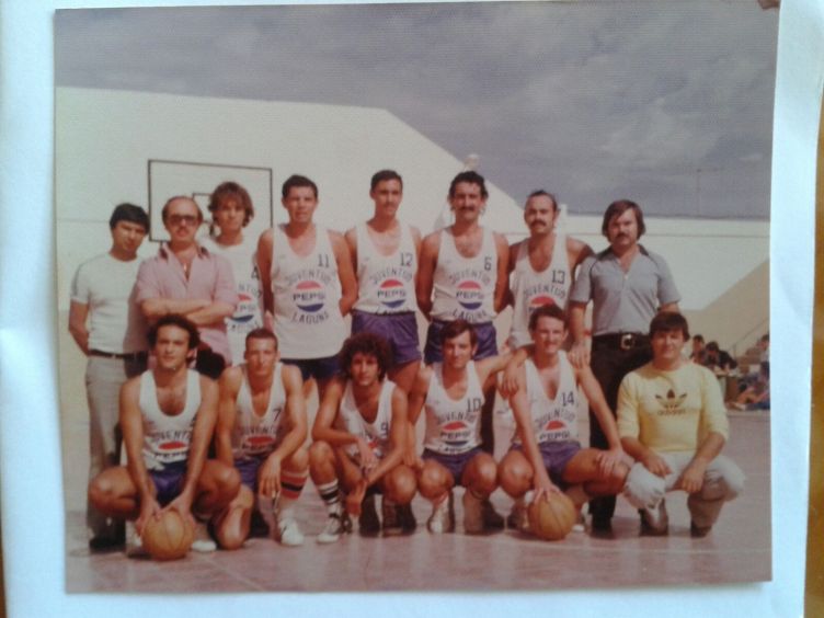 Esta foto es parte de la historias del CB Juventud Laguna, club decano del baloncesto en Canarias. La imagen es de un partido jugado en Fuerteventura, contra el Nenedan. El entrenador era Heriberto Fernández, palmero él. Yo ejercía entonces de delegado de expedición y de equipo (derecha, con pelucón y bigote). Junto a Heriberto, de calle, Narciso (q.e.p.d.), cuñado de Carmelo Cruz, y agachado, a la derecha, el también hermano de Fátima, José María. Reconozco a los jugadores Carlos (4), Carmelo Cruz (11), Pepito (12), Cristóbal Santana (6), Quique Márquez (13), Matías Camacho, Carlos Colomé, Jesús (9), Carlitos Gil Roldán (q.e.p.d.) 10 y Ramón Rojas (14), ex director de deportes en la Universidad de La Laguna.