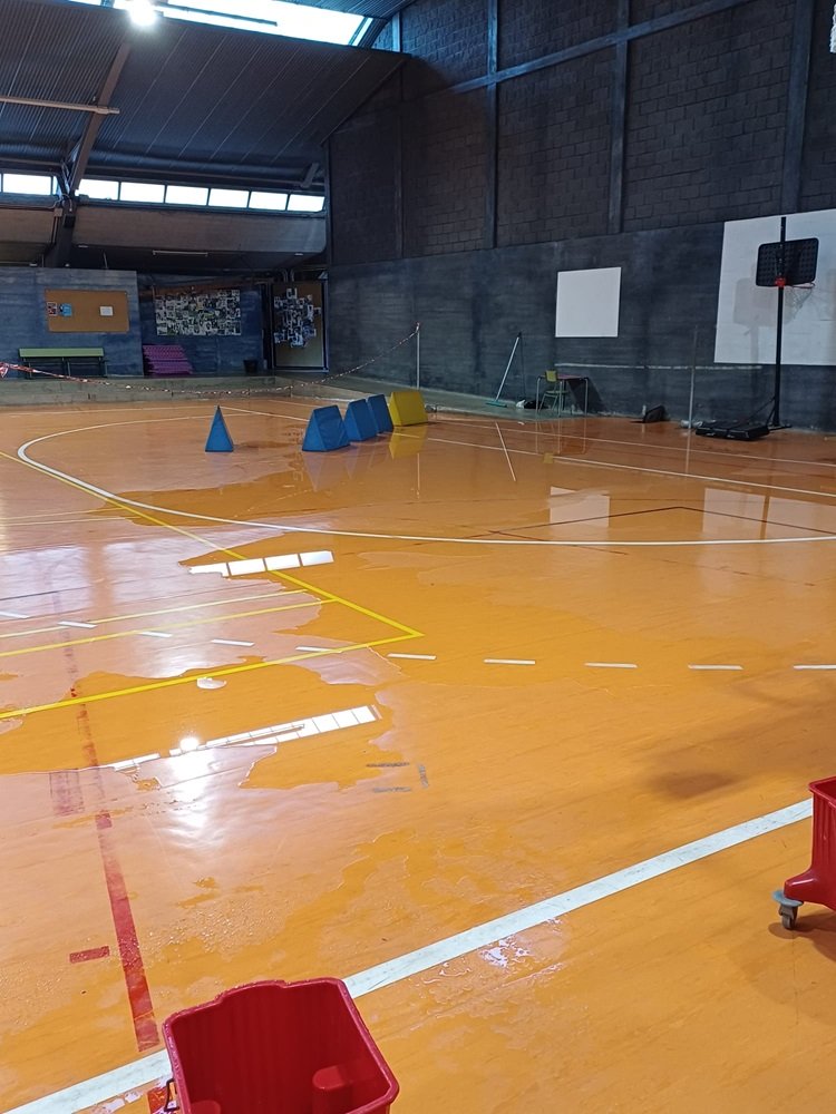 Ha vuelto a llover y los desperfectos en el techo del recinto deportivo hacen que las goteras impidan que se pueda entrenar y/o jugar, lo que representa un contratiempo para los numerosos equipos que se ejercitán bajo la tutela del CB Valle Arautápala.