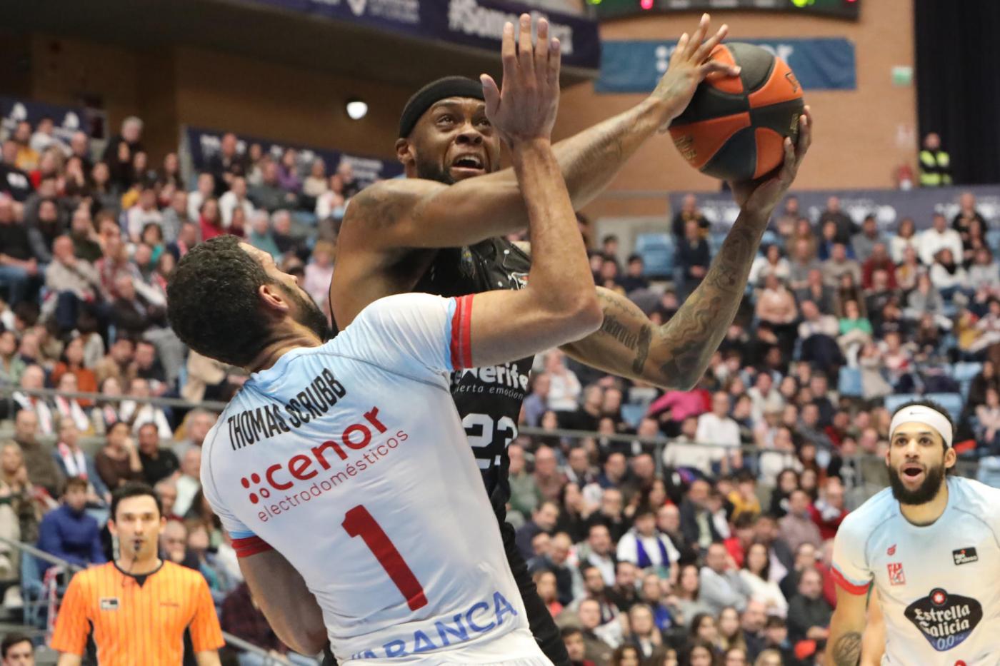 Scrubb concluyó con un expediente casi perfecto, pero no fue el único obradoirista que destacó en Tenerife en el duelo de la primera vuelta. Otra de las figuras del equipo fue el pívot Artem Pustovyi, que en casi 21 minutos anotó 16 puntos, con un registro sin apenas errores (siete de ocho canastas y dos de dos tiros libres), con cinco rebotes, una asistencia y 19 de valoración. El tercer jugador que estableció dos dígitos en anotación fue Jordan Howard, con doce puntos (sin triples y con ocho de diez tiros libres).