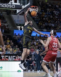 Shermadini seguía a lo suyo como dueño y señor de la «pintura», compartiendo el «cinco» con Guerra, si bien el georgiano acabó con 25 minutos, por los 11 del grancanario. El tercero de los interiores, Kosta Kostadinov, apenas disputó 3:20 al cargarse muy pronto con dos personales.