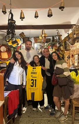 El jugador Georgios Bogris, quien formara parte de la familia aurinegra en dos etapas de su trayectoria cestista (16-17 y 19 a 21), ha vuelto a ejercer de anfitrión de amigos que conoció en su estancia en la Isla.