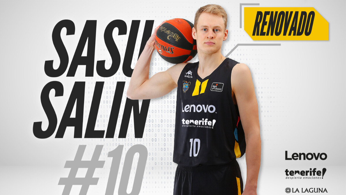 Sasu Salin 2023. El escolta finés Sasu Salin seguirá vistiendo los colores del Lenovo Tenerife hasta el final de la temporada 2022-23, tras renovar su compromiso con el club canarista por dos campaña más
