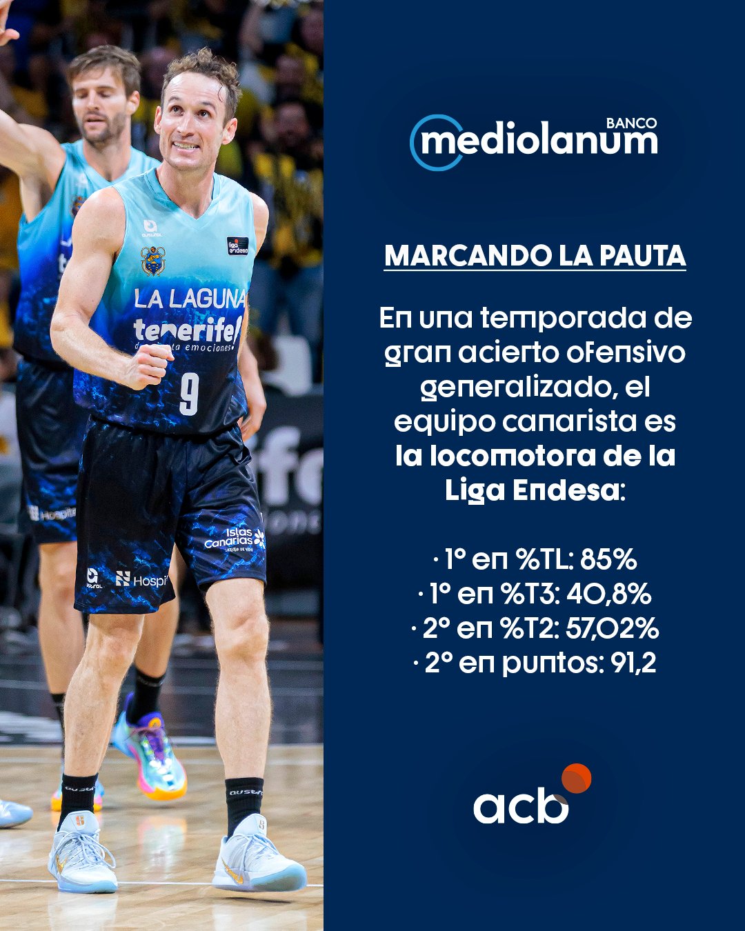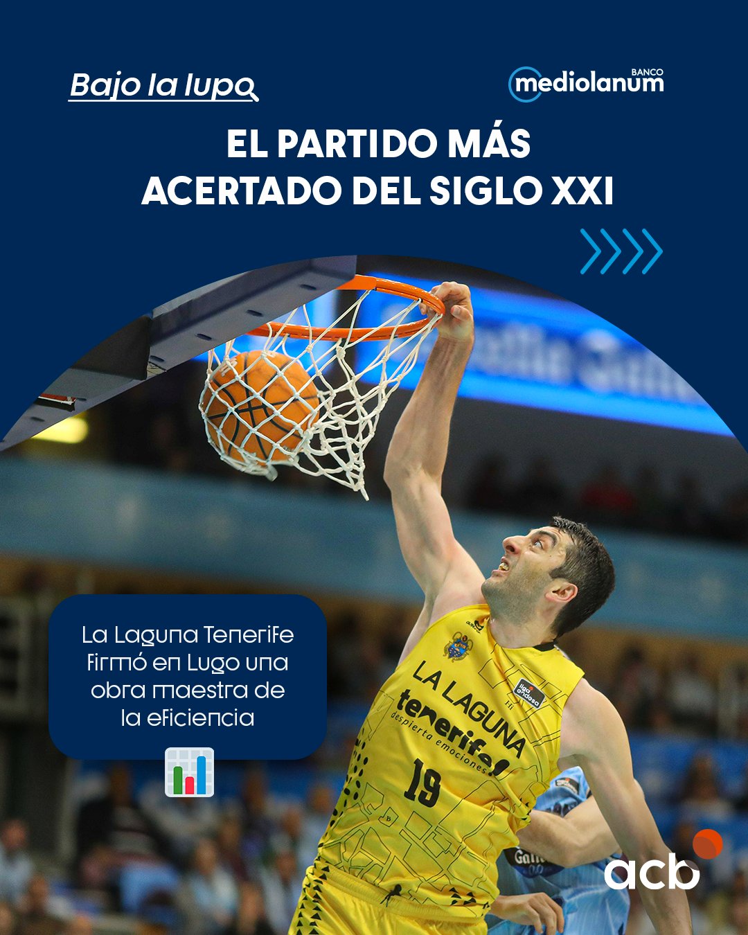 La página oficial de la ACB, en su espacio «BAJO LA LUPA», piropea en juego ofensivos y sus porcentajes del LA LAGUNA TENERIFE.