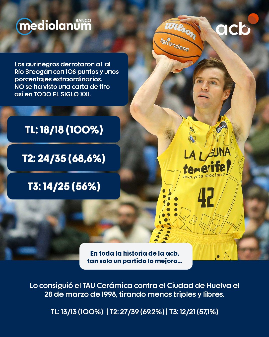 Y van más lejos al afirmar, con datos por delante, que en el triunfo ante Río Breogán, con esos 108 tantos, depararon tal acierto que «tal porcentaje es extraordinario y es el mejor de la LIga aCB en lo que va de siglo XXI».