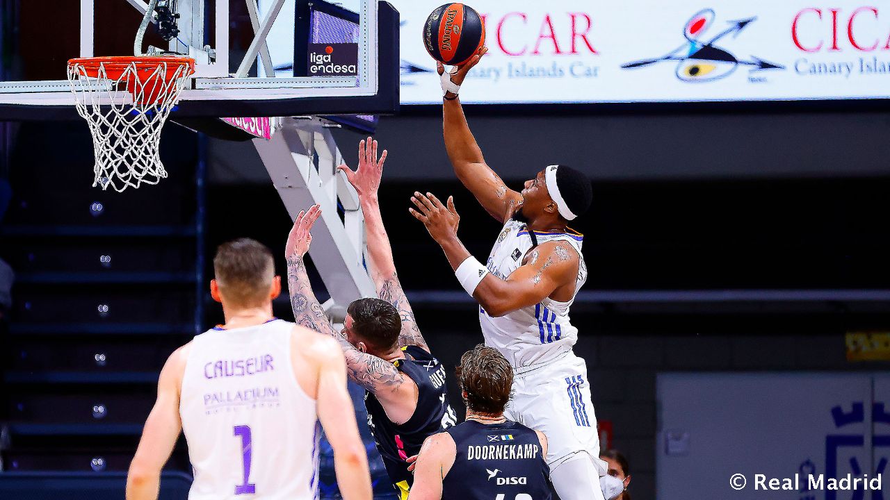 El listón físico subió en la segunda mitad y el Madrid supo adaptarse a la perfección. No perdió la concentración y elevó su nivel en defensa, donde Tavares se erigió en la gran figura del tercer cuarto. El de Cabo Verde fue un muro infranqueable, taponando hasta en 5 ocasiones a sus rivales, y superando a sus pares en el rebote ofensivo. A partir de su dominio en la pintura, los de Laso empezaron a correr. Causeur y Yabusele desmantelaban el balance defensivo de Lenovo Tenerife, que encajó un 10-2 de los madridistas para coger una renta de 12 puntos con el 30-42 en el minuto 26. Pero quedaba mucho tiempo todavía y a los nuestros les faltó fuelle en el tramo final de este cuarto, lo que permitió a los locales reaccionar con el desborde de energía de Sulejmanovic (41-43, min.30).