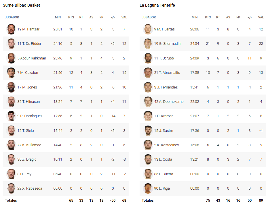 Además, los del «Bilbao Arena» ocupan una magnífica novena plaza, con siete victorias y ocho derrotas, ya sin opciones de colarse en la Copa del Rey, pues cuenta con dos triunfos menos que La Laguna, Baskonia y Unicaja, con el déficit de la diferencia de favor-contra, figurando en negativo (-39).