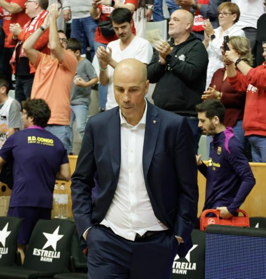 Pocos minutos después de la derrota se ha podido ver al técnico de Terrassa conversando en los pasillos de Fontajau con Juan Carlos Navarro, manager de la sección, y Mario Fernández, el director deportivo, todos con rostros de abatimiento.