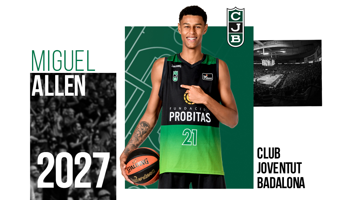 El Club Joventut Badalona y Miguel Allen han llegado a un acuerdo para ampliar su vinculación hasta el 30 de junio de 2027. El jugador canario acababa contrato en 2025, y gracias a su evolución y gran proyección, Club y alero han decidido aumentar su relación dos temporadas más.