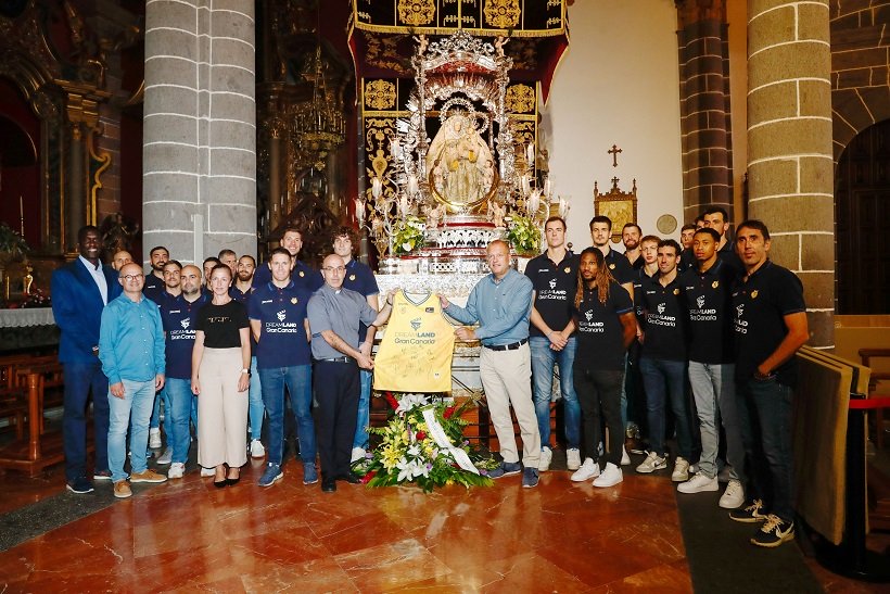 El Dreamland Gran Canaria realizó este martes 19 la tradicional ofrenda floral a la Virgen del Pino en el municipio de Teror. Los jugadores y cuerpo técnico de la entidad amarilla protagonizaron un acto que se ha convertido con el paso de las décadas en un clásico de la pretemporada. Un momento en el que el club aprovecha para pedir salud y suerte para el curso venidero.