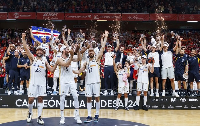El Real Madrid, con Chus Mateo en el banquillo, sumó hoy el título número 37 en la Liga de baloncesto. Los merengues superan en 17 al Barça, su eterno rival, que suma 20. También han elevado el trofeo de campeón Baskonia (4), Joventut (4), Manresa (1), Unicaja (1) y Valencia Basket (1).