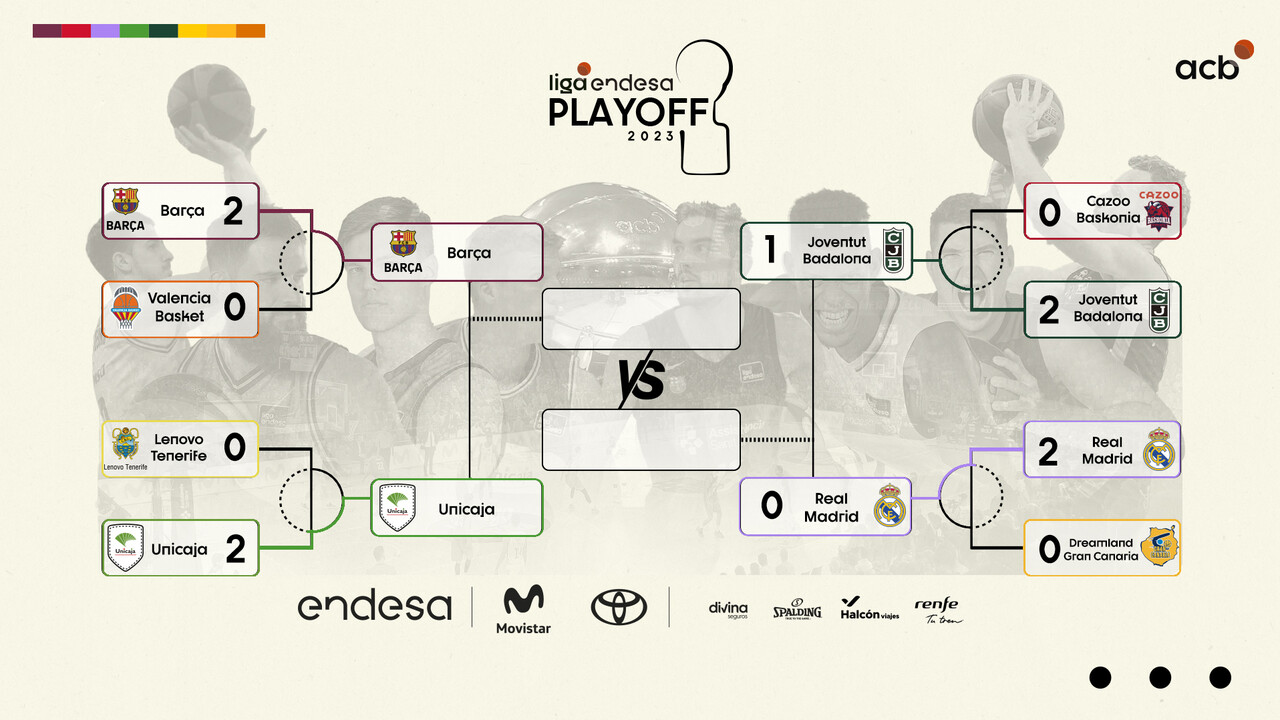 Con las eliminatorias de semifinales indicando un 1-1 en el Real Madrid-Joventut y un 1-0 en la confrontación Barça-Unicaja, estos son las fechas, horarios y canales de los play-off