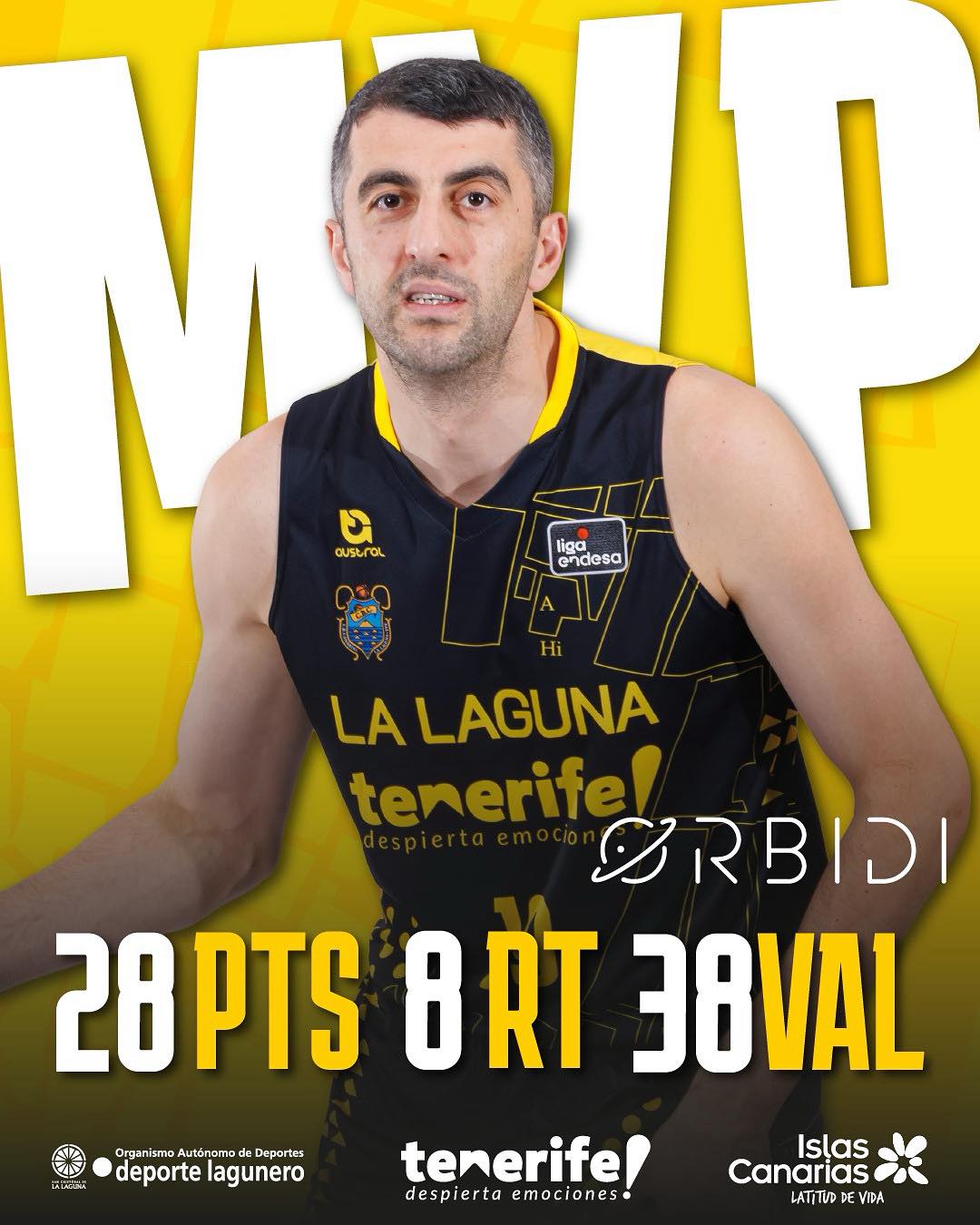 El jugador georgiano de La Laguna Tenerife Giorgi Shermadini estrena el curso como Jugador de la Jornada, tras sumar 28 puntos, 7 rebotes y 38 de valoración en el triunfo de su equipo