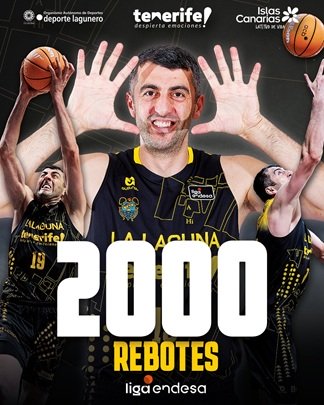 Con los seis conseguidos este mediodía en el «Roig Arena», el pívot de La Laguna Tenerife, GIO SHERMADINI, superó la cifra de los ¡2.000 rebotes» en la Liga ACB.