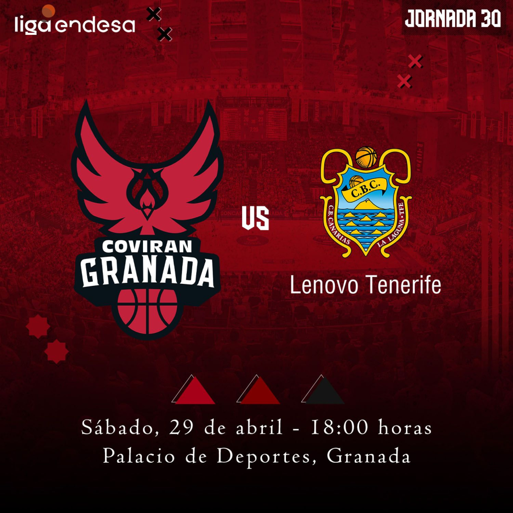 El Coviran Granada afronta este sábado la primera de las cinco jornadas que restan para la conclusión del campeonato en la liga Endesa. El equipo dirigido por Pablo Pin recibe en el Palacio de Deportes al Lenovo Tenerife, que marcha situado en la cuarta posición de la clasificación. Los locales no podrán contar con Pere Tomàs, lesionado en el oblicuo durante un entrenamiento a lo largo de la semana.