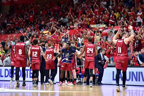73. UCAM Murcia Club Baloncesto (19+21+16+17): Caupain (2), Ennis (18), Rodions Kurucs (8), Sleva (12) y Diagne (2) -cinco inicial-, Sant-Roos (10), Radovic (5), Radebaugh (10), Hakanson (2) y Morin (4).