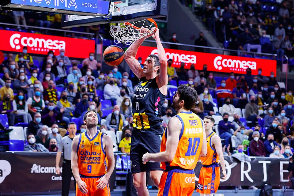 Una posición por debajo aparece un Lenovo Tenerife con un triunfo menos y que llega a la Fonteta con la posibilidad de superar en la clasificación al equipo taronja si consigue llevarse el triunfo por 3+ puntos y recuperar el basket-average particular tras su derrota en el partido de la primera vuelta por 78-80. El equipo aurinegro tiene a la pareja más valorada de la Liga Endesa con la dupla que forman Marcelinho Huertas y Gio Shermadini, trae en sus filas a jugadores con pasado taronja como el citado Sastre y el canadiense Aaron Doornekamp, es el equipo más eficaz en el lanzamiento de la Liga Endesa y tuvo que sufrir para sacar el triunfo en la prórroga el martes ante el Coosur Real Betis por 99-97, recuperando sensaciones tras su derrota en el derbi canario y elevando su racha a seis triunfos en los últimos siete partidos de Liga Endesa.