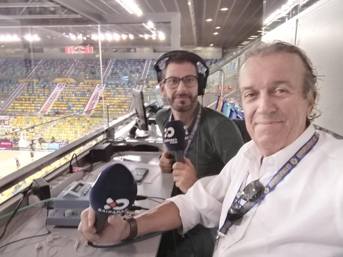 En la foto con un gran profesional como es Agustin Arias de EL DÍA de Tenerife. Gran profesional y mejor amigo. Me encanta que mi época en basquet me haya dejado buenos amigos en la isla vecina y tengo que dar las gracias a todos los que me gustaría abrazar y a Agustin por venir a saludarme hoy. Un fortísimo abrazo a todos los amigos y conocidos canarios (de todas las islas). Esto lo estoy escribiendo desde mi IPad pero escribiré algo más extendido. Gran partido el que hemos visto entre los dos equipos canarios…¡ENHORABUENA A TODA LA AFICIÓN DE BALONCESTO DE CANARIAS POR LA ACTITUD Y RESPETO DEPORTIVO DEMOSTRADO UNA VEZ MÁS…!!!