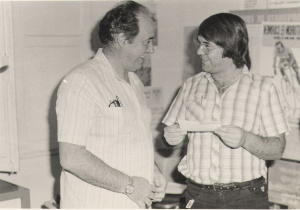 Entregando a Díez Alegre el talón de la recaudación de un partido organizado por los periodistas para pagar arbitrajes de la base