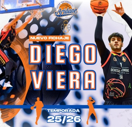 El CB Aridane anuncia el fichaje de jugador Diego Viera El pívot, de 24 años y 2,08 metros, disputó la pasada temporada en la Tercera FEB con el CP Peñarroya-Pueblonuevo, de la localidad andaluza de Córdoba y llega a La Palma para seguir creciendo y sumar su talento al equipo del "Severo Rodríguez". En la campaña 24-25, Viera López participó en 23 partidos, con un total de 511 minutos, en los que anotó 111 puntos, si bien su fuerte estuvo en la pucha por el rebote, firmando un total de 187 capturas. Acabó como tercer mejor jugador del equipo, con +225 de valoración. EL...