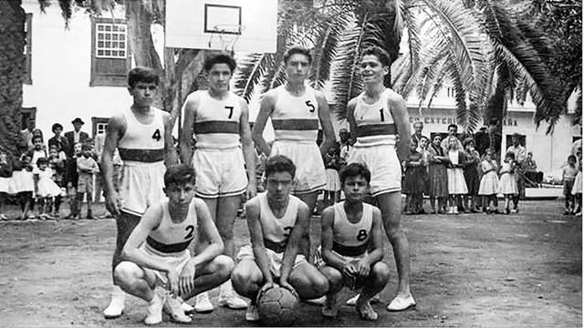 El colaborador de BASKETMANIATENERIFE.ES y aficionado al mundo de la canasta, mi amigo BRUNO J. ÁLVAREZ, nos regala esta histórica foto de un equipo de la década de los cincuenta. "Puerto de la Cruz – 1955/60. Baloncesto en la Plaza del Charco. [Fotografía, de autor desconocido, coloreada]. En la zona norte de la plaza, hoy ocupado por el parque infantil, existía un espacio donde se jugaba al baloncesto. En la mañana del domingo, con cal y con la ayuda de unas cuerdas se marcaba la cancha y quedaba lista para el partido…”...
