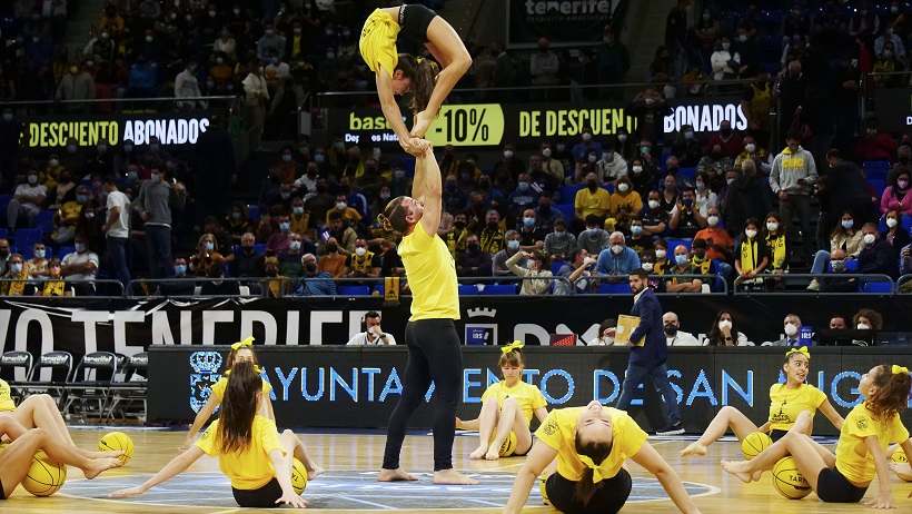 FOTOS DE EMILIO COBOS Ovaciones reiteradas Si el encuentro Lenovo Tenerife-Real Madrid fue un vibrante espectáculo, lo vivido en el descanso merece también un sobresaliente. El grupo Acroflyer, con sede en San Miguel de Abona deleité con la exhibición de gimnasia acrobática, arrancando la exclamación del público y aplaudiendo a rabiar la actuación de las de amarillo y negro. Los más peques se lo pasaron a lo grande Si los grandes se lo pasaron del diez, los más pequeños saltaron con la victoria del CB Canarias sobre el Real Madrid. De pie, rodeado de hermanos y padres, incluso hubo quien estuvo en el Santiago Martín...