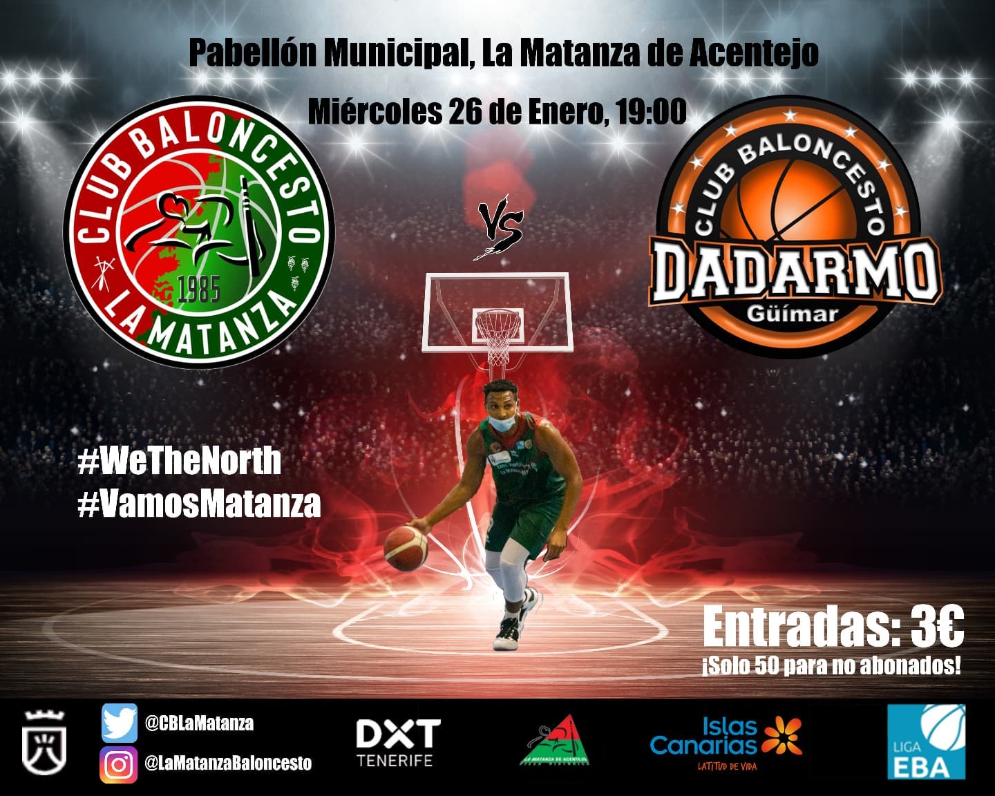 Se anuncia en la FEB nueva fecha para el esperado derbi tinerfeño de la Liga EBA, entre el CB La Matanza y el Transportes Gobra de Güímar. Será mañana miércoles, día 26 de enero, a las siete de la tarde, en el Pabellón Municipal de La Matanza. Un encuentro que se ha aplazado en las dos fechas anteriores, esperando que, ¡por fin! la tercera sea la definitiva. Desde el club norteño se indica que tan solo habrá 50 entradas a disposición del público. Los interesados deben enviar un correo electrónico a [email protected], con nombre, DNI y teléfono. CLASIFICACIÓN PO EQUIPO PJ PG PP PF PC PT R 1 C.B. POZUELO 17 13 4 1277 1166 30 -1 2 BALONCESTO ALCALA 17 11 6 1420 1372 28 -1 3 UROS DE RIVAS 17 11 6 1273 1254 28 +2 4 REAL MADRID 15 12 3 1247 1064 27 +3 5 NCS ALCOBENDAS 17 9 8 1268 1255 26 +4 6 NÁUTICO TENERIFE 17 8 9 1275 1330 25 +1 7 LUJISA...