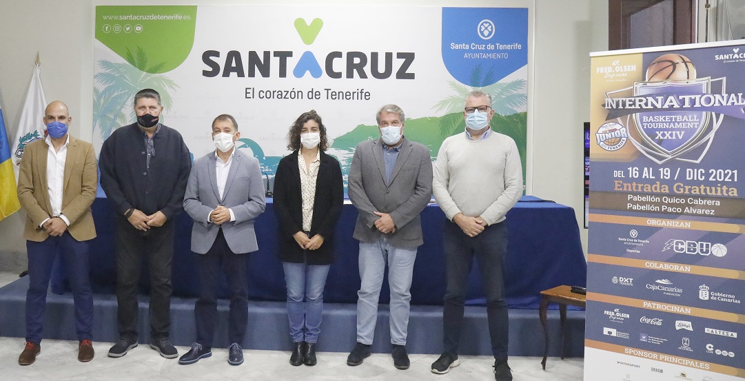 Este lunes, en el Ayuntamiento de Santa Cruz de Tenerife, se presentó el ‘XXIV Fred Olsen Express U18 International Basketball Tournament’, que tendrá lugar del 16 al 19 de diciembre en los pabellones capitalinos Quico Cabrera y Paco Álvarez. En el acto intervinieron José Manuel Bermúdez, alcalde del municipio; Alicia Cebrián, concejala de Deportes de la corporación municipal; Ramón Cubeles, presidente del Club Baloncesto Unelco; y Joan Padilla, responsable de Márquetin de Fred Olsen Express. GABINETE PRENSA TORNEO.- Bermúdez se congratuló de que la cita anual haya podido regresar, tras el obligado parón por la situación sanitaria del año pasado. “Poder celebrar...