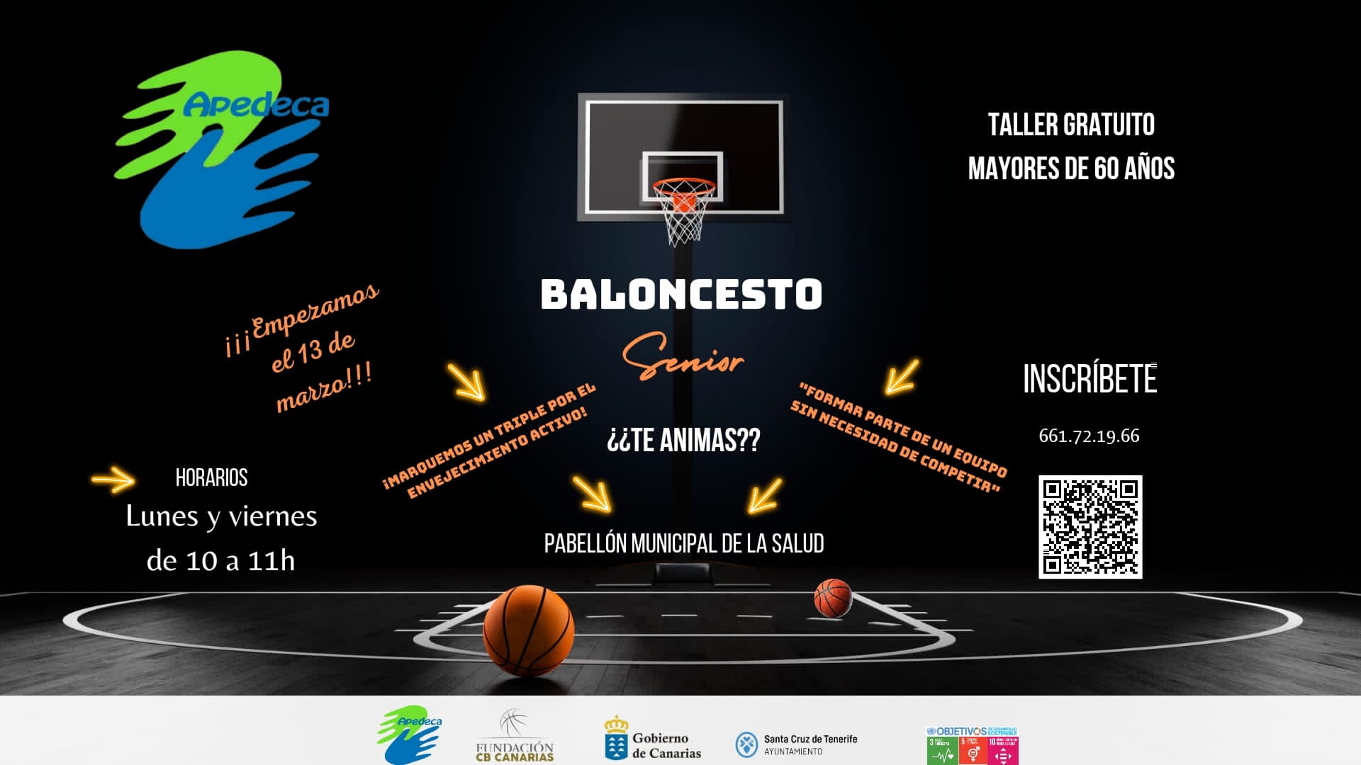 La Fundación CB Canarias se compromete con el envejecimiento activo respaldando el proyecto ‘Baloncesto Senior’ de Apedeca  (Asociación de Ayuda a Personas Dependientes en Canarias). La iniciativa consiste en la creación de un equipo de personas mayores de 60 años que pretende fomentar la socialización y los hábitos de vida saludable en este sector de la población.