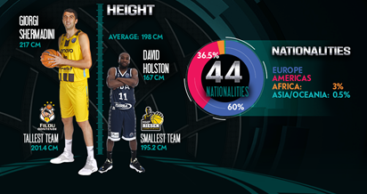 No todo está en el tamaño, como sigue demostrando David Holston año tras año. Con 5 pies 6 pulgadas/1,67 m, el base de JDA Dijon es el jugador más bajo de la BCL, mientras que Giorgi Shermadini de Lenovo Tenerife es el más alto con 7 pies 1 pulgada/2,17 m.