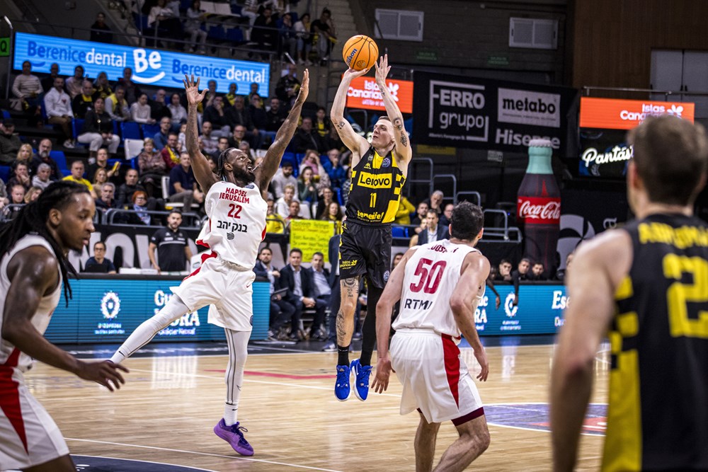 Pues a pesar de los dos criterios, permitiendo todo en una zona y no perdonando nada en la otra, el Lenovo Tenerife logró una importante victoria ante el Hapoel Jerusalen (95-92), determinante para sus aspiraciones de meterse en los cuartos de final de la BCL 23-24.