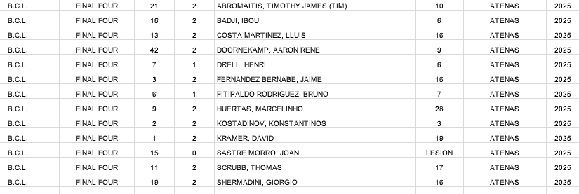 BCL: ¡43 son los JUGADORES que han lucido la camiseta AURINEGRA en las SEIS Finales a Cuatro