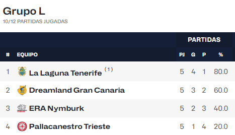 - Gran Canaria perdió su último partido (76-79 contra Tenerife) pero aún no ha perdido dos partidos consecutivos en la Liga de Campeones de Barcelona; tres de sus últimos cuatro partidos terminaron con una diferencia de una sola posesión.