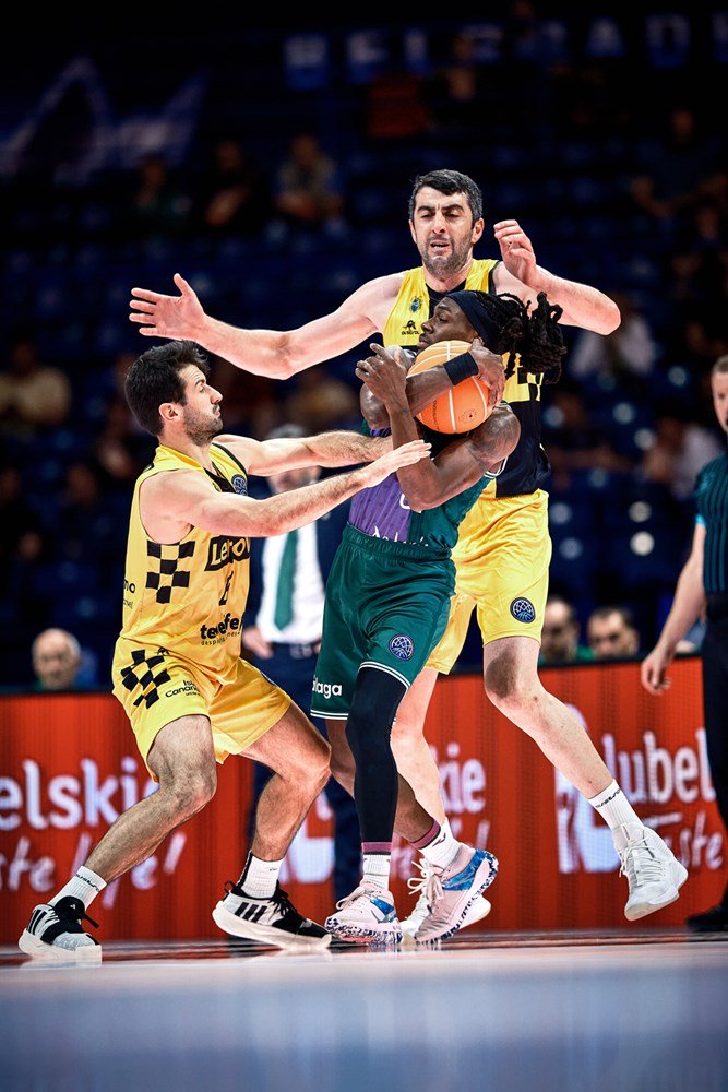 Pese a ello, los de Txus Vidorreta jamás «bajaron los brazos», peleando por cada balón y sufriendo la permisividad de los árbitros en los numerosos «palos» que recibían a la hora de buscar la cesta malagueña, siendo Kyle Guy, Marcelinho Huertas y Gio Shermadini quienes más leña alcanzaron. Un juego agresivo que en muchas ocasiones traspasaba la línea de lo legal, aunque el criterio arbitral, como le ha pasado al Lenovo Tenerife a lo largo de la temporada en BCL, jamás le favoreció.
