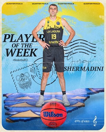La Basketball Champions League informó en Twitter que el pívot de La Laguna Tenerife, GIO SHERMADINI, fue elegido por votación popular como el mejor de la primera jornada de las eliminatorias de Cuartos de Final, en lo que al primer partido se refiere.