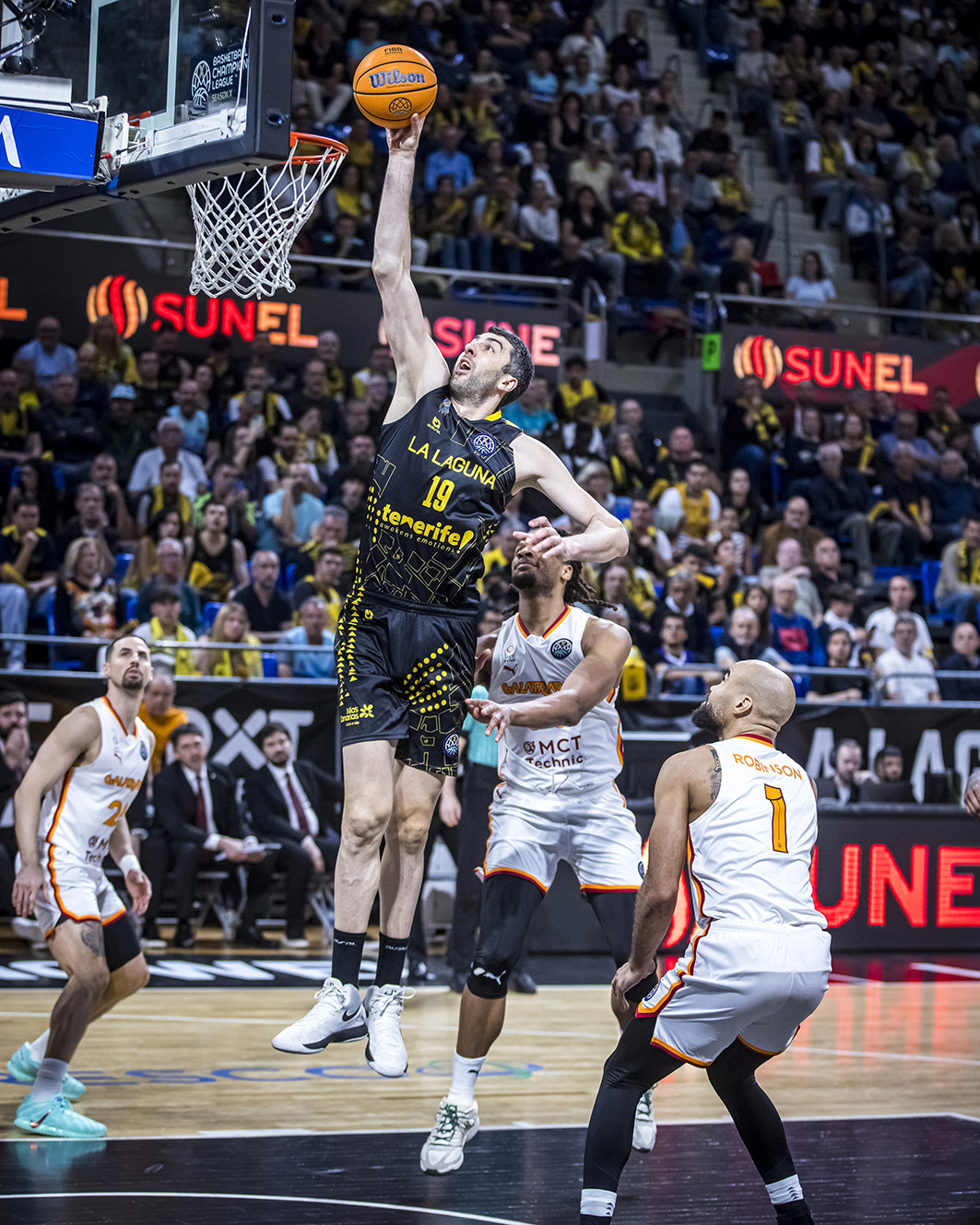 ¡1-0.. y un paso más cerca! La Laguna Tenerife se adjudicó este miércoles de forma justa el primer capítulo de la serie de cuartos de final de la Basketball Champions League (BCL), ante el potente Galatasaray (84-83), vigente subcampeón del torneo. Tras un final de infarto y con una actuación arbitral muy discutible de por medio, el grupo de Txus Vidorreta sacó adelante un exigente partido que los turcos pelearon hasta el final, incluido un tiro fallido para ganar de James Palmer.
