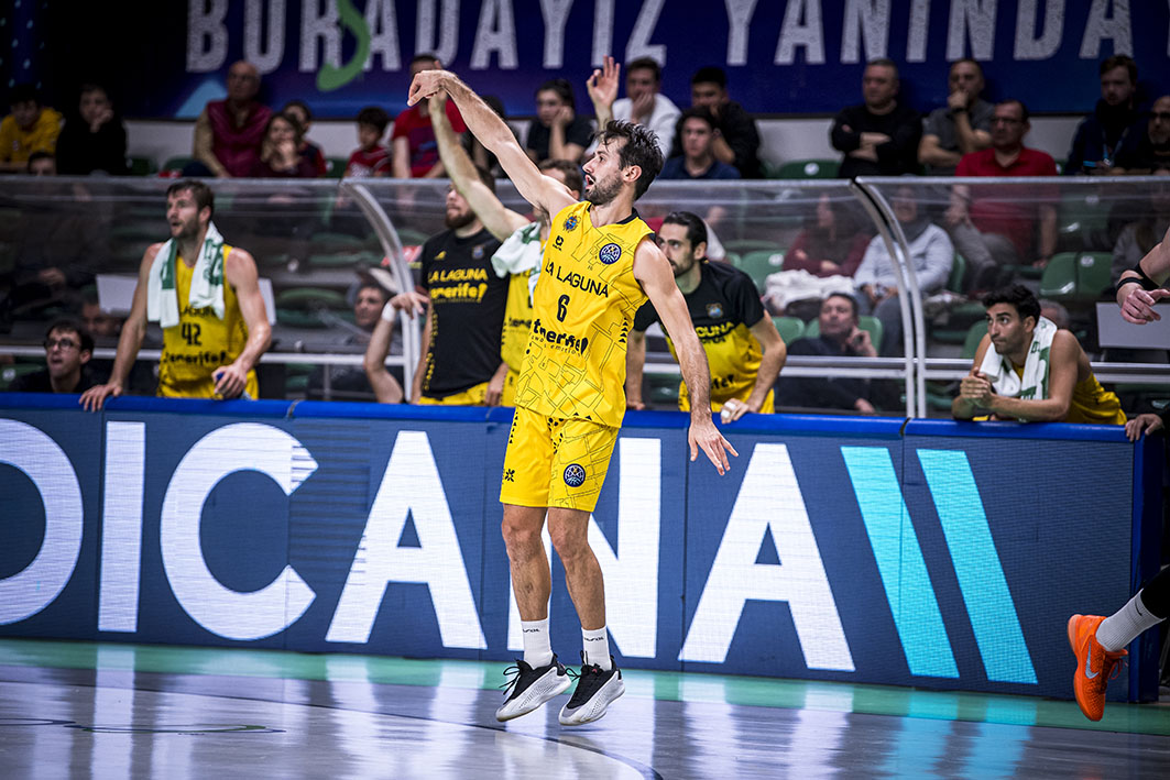 Desde el arranque La Laguna Tenerife controló el juego y eso lo reflejó pronto el electrónico con el 4-12 y 10-18, consecuencia del buen nivel de intensidad atrás y del acierto de Bruno, Giedraitis y Scrubb cara al aro turco. Se cerró el primer acto con una renta de +8 (12-20).
