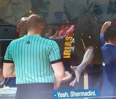 Micrófono en el árbitro principal del Canarias-Manresa de la BCL