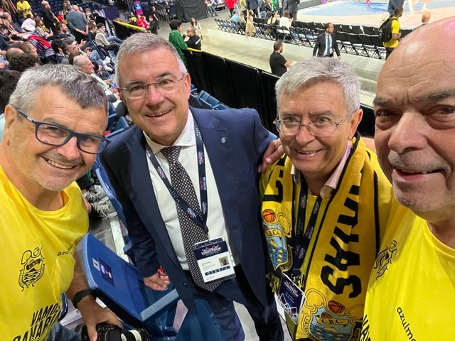 En las gradas, algunos conocidos, como Fran Vázquez, que trabaja con el equipo técnico de los filiales de Unicaja, otros ex canaristas, consejeros del CB Canarias… así como la leyenda serbia del baloncesto Svetislav Pešić, o el presidente de FIBA Europa, el español Jorge Garbajosa.