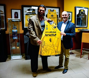 Presencia en el palco del actor de nacionalidad turca Can Yaman, estrella de las telenovelas en su país natal, quien recibió una camiseta a su medida de manos del presidente Aniano Cabrera.