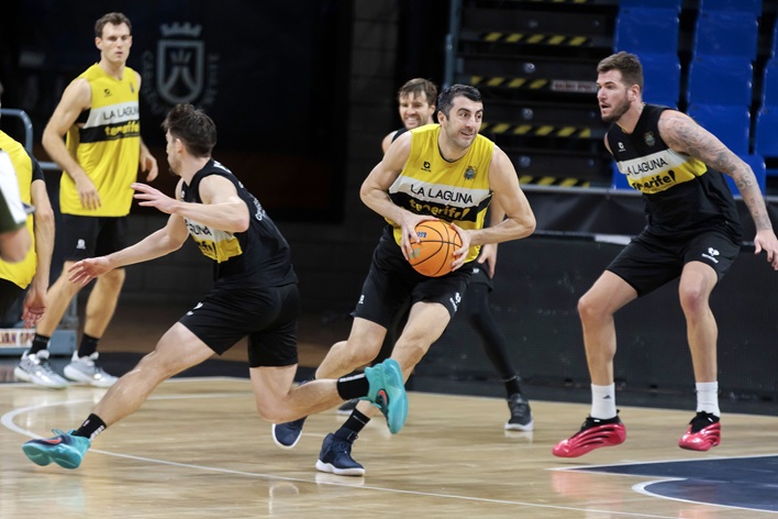 La plantilla de LA LAGUNA TENERIFE se ejercitó en la mañana de hoy con vistas al importante encuentro de la Basketball Champions League que este miércoles, a las 20:00 horas, le enfrentará a la escuadra italiana Trapani Shark.