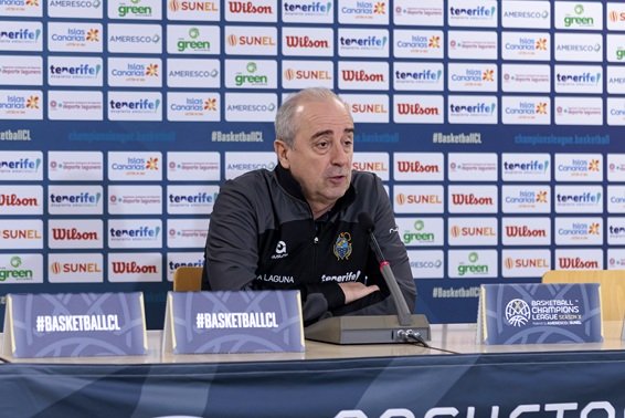 Txus Vidorreta, entrenador del Lenovo Tenerife, protagonizó en la mañana de hoy la rueda de prensa previa al derbi canario de la BCL, que este miércoles disputarán en el «Gran Canaria Arena» el CB Gran Canarias y La Laguna Tenerife