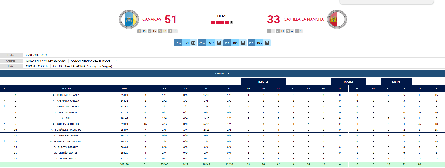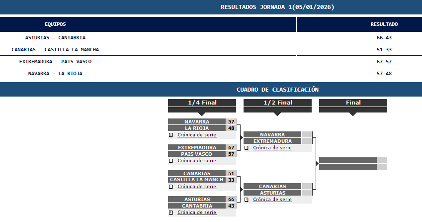En semifinales aguarda a las canarias la selección de Asturias, que se impuso a Cantabria por 66 a 43.