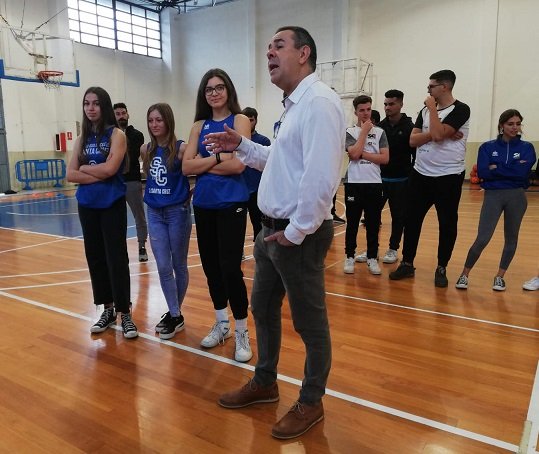 Las jugadoras Aroha Fariña, Carlota Delgado e Inés García, que ahora viste la camiseta del siglo XXI, protagonizaron la visita sorpresa al Campus de Navidad que organiza el CB Santa Cruz en las instalaciones del Pabellón Municipal Quico Cabrera y en el Paco Álvarez.