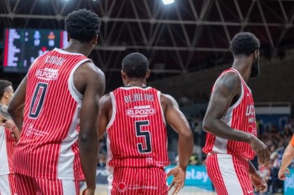 La 27ª jornada se había iniciado muy bien para los intereses canaristas. Así, el sábado el Surne Bilbao Basket resultó sorprendido en su feudo por el BAXI Manresa y el Baskonia caía en su visita al Joventut de Badalona. Se quedaban los vascos con el balance de 15-13 y los de Vitoria con 19-8. AGUSTÍN ARIAS.- En la mañana del domingo, derrota del Barça en su visita al Lleida, dejando a los azulgrana con un 18-9. Además, el colista Coviran Granada, en el derbi andaluz, derrotó al Unicaja malagueño, con los de Ibon Navarro que seguía con el 15-12. Y llegó el partido que...