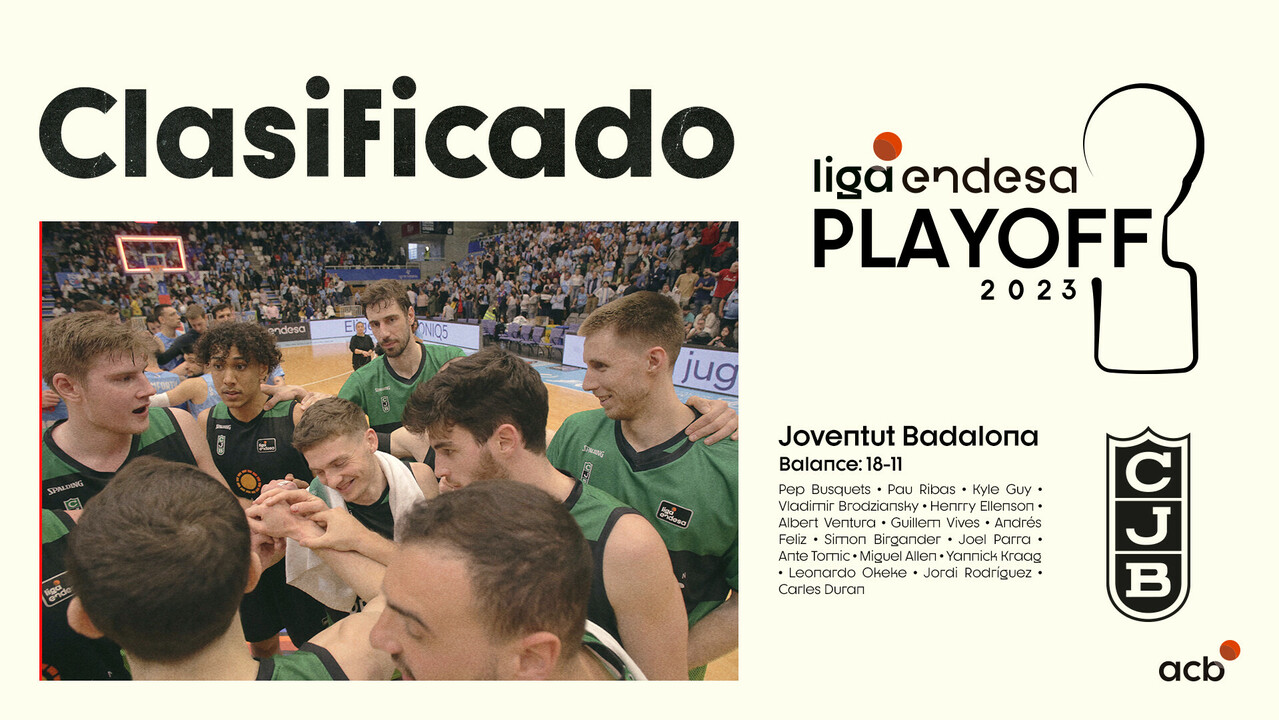 Tras las clasificaciones de Barça, Cazoo Baskonia, Real Madrid, Lenovo Tenerife y Unicaja, el Joventut Badalona es el 6º equipo que confirma su presencia en la lucha por el título ACB.COM El Joventut Badalona confirmó este miércoles, de forma matemática, su presencia en el Playoff de la Liga Endesa 2022-23. Los verdinegros tenían la opción de obtener el billete en el caso de que el Lenovo Tenerife venciera en la cancha del Surne Bilbao Basket, algo que ocurrió (60-83). Con un balance de 18 victorias y 11 derrotas, el cuadro catalán tiene un colchón suficiente, a cinco jornadas del cierre de la fase...
